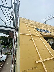 Serielle Sanierung – hört sich zunächst ziemlich technisch an, aber was genau steckt dahinter? Wird eine energetische Gebäudesanierung mit Hilfe von modular vorgefertigten Elementen durchgeführt, spricht man vom Seriellen Sanieren. Im Falle des »Westquartiers« kommen vorgefertigte Fassadenelemente zum Einsatz.
